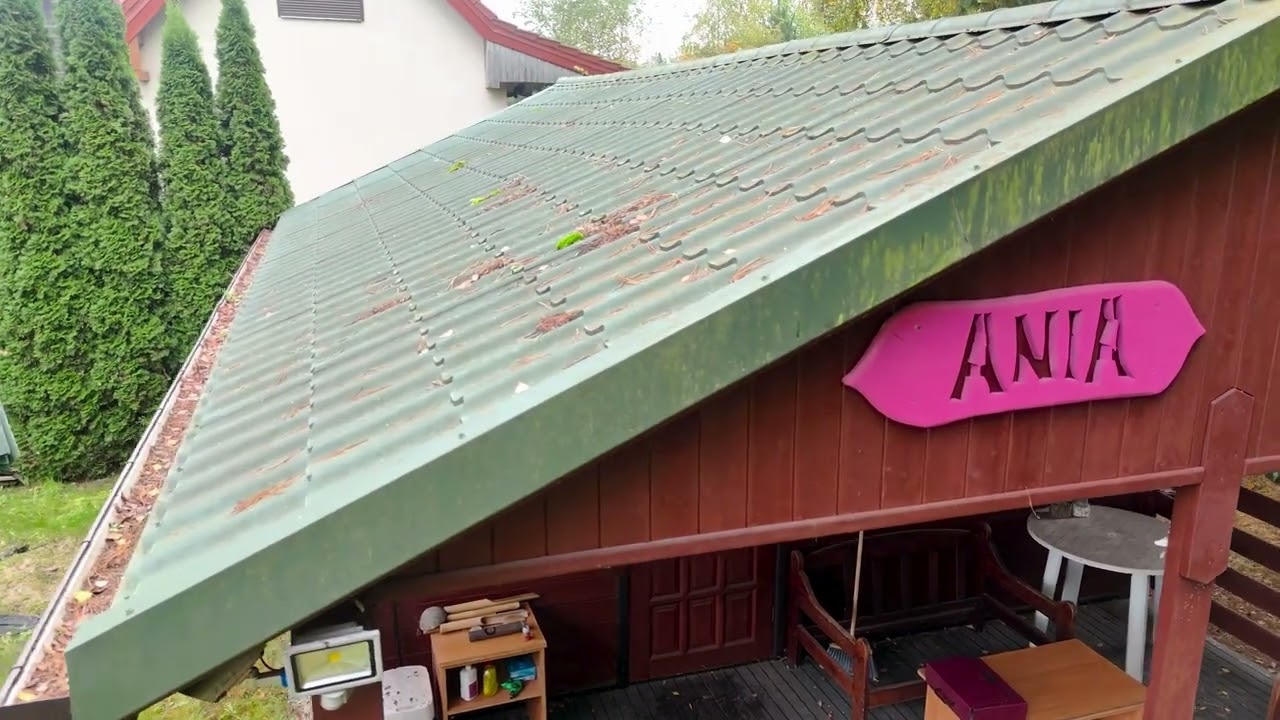 – ocieplony, zadaszony, kryty blachodachówką, orynnowany