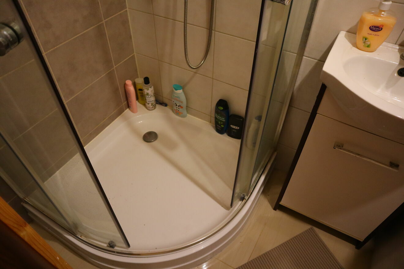– woda z wodociągu, prąd, szambo z atestem