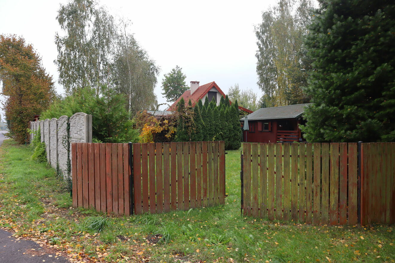Działka w pełni ogrodzona – część ogrodzenia betonowa, część drewniana i z siatki